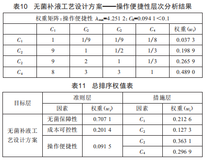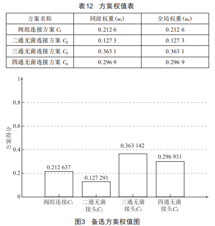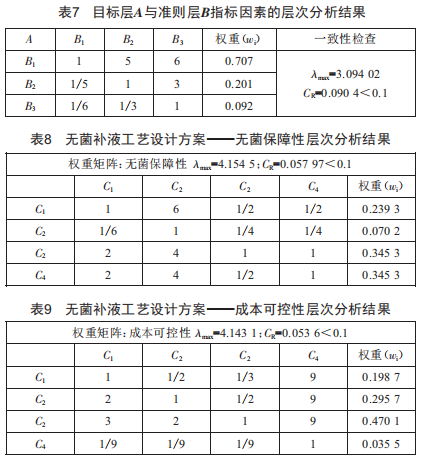 通過上述案例分析,明確了采用三通無菌接頭方案為符合藥品生產(chǎn)質(zhì)量管理規(guī)范以及H疫苗無菌補(bǔ)料工藝要求的最優(yōu)工藝設(shè)計方案。在生物制品行業(yè)工程建設(shè)項目設(shè)計階段,在受多種因素影響的互斥方案擇優(yōu)選取過程中,采用層次分析法具有現(xiàn)實的可行性及有效性。