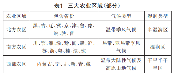 以400mm年降水線為界,中國的農(nóng)業(yè)可根據(jù)地區(qū)差異性分為東部與西部:以溫帶、亞熱帶劃分,則可以分為南方與北方。為了研究農(nóng)業(yè)電排灌負荷在不同區(qū)域的情況,結(jié)合我國部分行政區(qū)劃,在樣本滿足實證研究要求的基礎(chǔ)上,詳細總結(jié)了不同區(qū)域間農(nóng)業(yè)電排灌的最優(yōu)負荷情況。本文把中國分成北方、南方、西部三大農(nóng)業(yè)區(qū)域,在同一農(nóng)業(yè)區(qū)內(nèi),氣候條件、干濕情況較為相似。劃分結(jié)果如表1所示(未包含所有省級行政區(qū)劃),雖然部分省份同屬多個區(qū)域,但考慮到統(tǒng)計年鑒中數(shù)據(jù)均是分省數(shù)據(jù),故同一省只能歸屬一個農(nóng)業(yè)區(qū)。