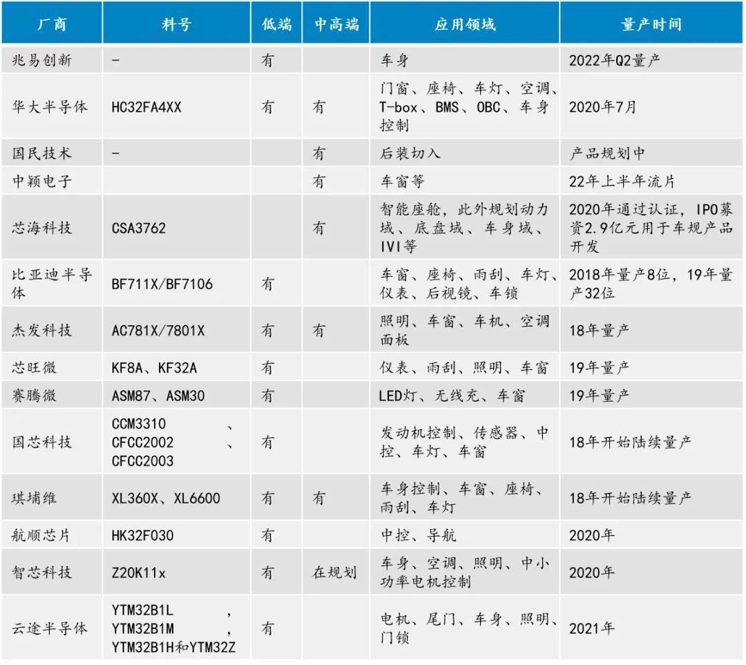 國(guó)內(nèi)具有車規(guī)MCU產(chǎn)品線的廠商