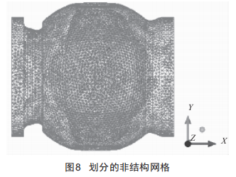 建立完Body后,首先設置全局網格尺寸,考慮到計算速度及精度要求,最大網格尺寸設置為8mm,選擇網格類型為四面體。在網格生成菜單中選擇對可見部分劃分非結構網格,否則會覆蓋掉之前生成的結構網格。劃分后的非結構網格如圖8所示。