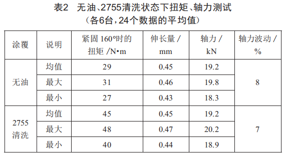 3.2涂機(jī)油、無油、2755清洗軸力比較試驗(yàn)