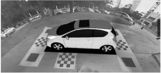 全景系統(tǒng)的安裝過程中,有個(gè)環(huán)節(jié)叫標(biāo)定,在系統(tǒng)安裝完成后,需在地面鋪設(shè)相關(guān)的圖案,通過攝像頭對(duì)圖案的攝取和取點(diǎn)進(jìn)行定位并達(dá)到精確拼接的目的。圖示可見標(biāo)定布是前后左右四塊,這種方法拼接精度較高。主流的全景系統(tǒng)生產(chǎn)廠家,2D與3D的標(biāo)定是用同一套標(biāo)定方法。