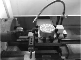 要準(zhǔn)確噴灑冷卻刀具,經(jīng)過實踐論證噴頭只能安裝在刀架上,而刀架是一個會轉(zhuǎn)動的部件,通過了解刀架結(jié)構(gòu)得知,從刀架中心穿過一條軟管可以到達刀架頂蓋,可通過做一個噴頭組合器來實現(xiàn)對多把刀具進行冷卻。