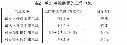 因此,單燈監(jiān)控裝置的工作電流應(yīng)滿足表2的要求。