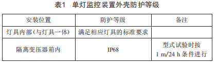因此,單燈監(jiān)控裝置的外殼防護(hù)等級根據(jù)其安裝的位置總結(jié)為如表1所示的要求。