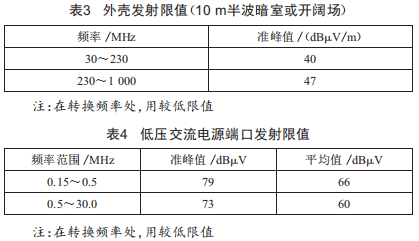 飛行器與地面的通信大量采用了無線電的方式,因此需要控制場道上設(shè)備的輻射發(fā)射和傳導(dǎo)發(fā)射。由于單燈監(jiān)控裝置的安裝位置與燈具所處的位置類似,其輻射發(fā)射和傳導(dǎo)發(fā)射的要求可參考燈具的要求,如表3和表4所示。