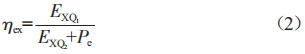 式中,Ex0l為空調循環(huán)空氣的冷量?(kw):Ex02為蒸發(fā)器中制冷劑的冷量?(kw):Pe為壓縮機的功率(kw)。