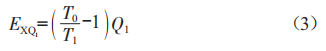 式中,T0為環(huán)境溫度(K):T2為制冷劑的蒸發(fā)溫度(K):Q2為制冷劑釋放的冷量(kw)。