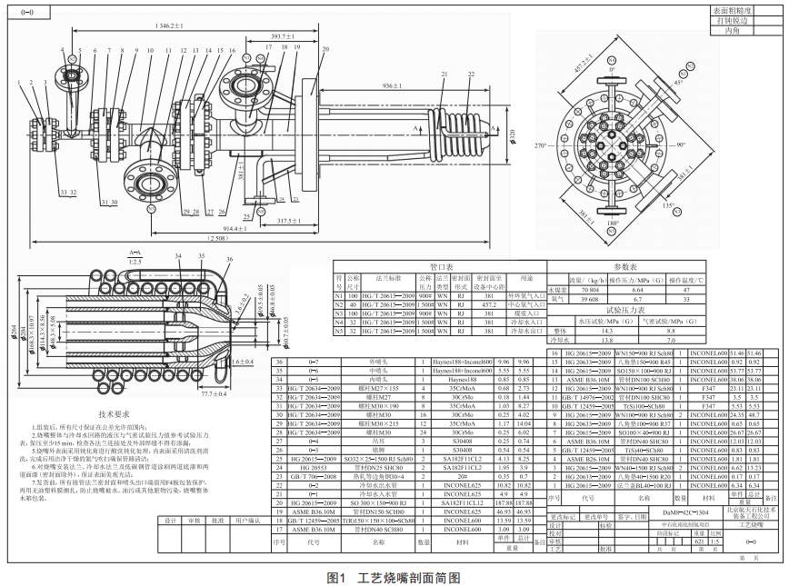 工藝燒嘴為中石化南化公司煤氣化裝置關(guān)鍵設(shè)備,主要原理是水煤漿和氧氣在工藝燒嘴中充分混合霧化進(jìn)入氣化爐的燃燒室中進(jìn)行反應(yīng),生成以C0和H2為有效成分的粗合成氣,制造商為GE和北京航天石化技術(shù)裝備工程公司。
