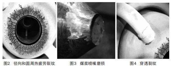 (2)煤漿噴嘴磨損減薄嚴(yán)重,同心度變差,如圖3所示。