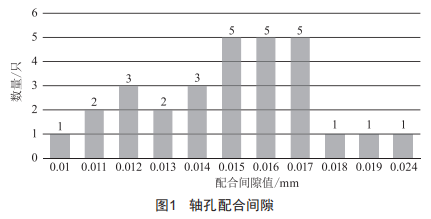 如圖1所示,原裝配方式軸孔的配合間隙主要集中在0.012~0.017mm,但是存在個(gè)別配合間隙較小的情況。