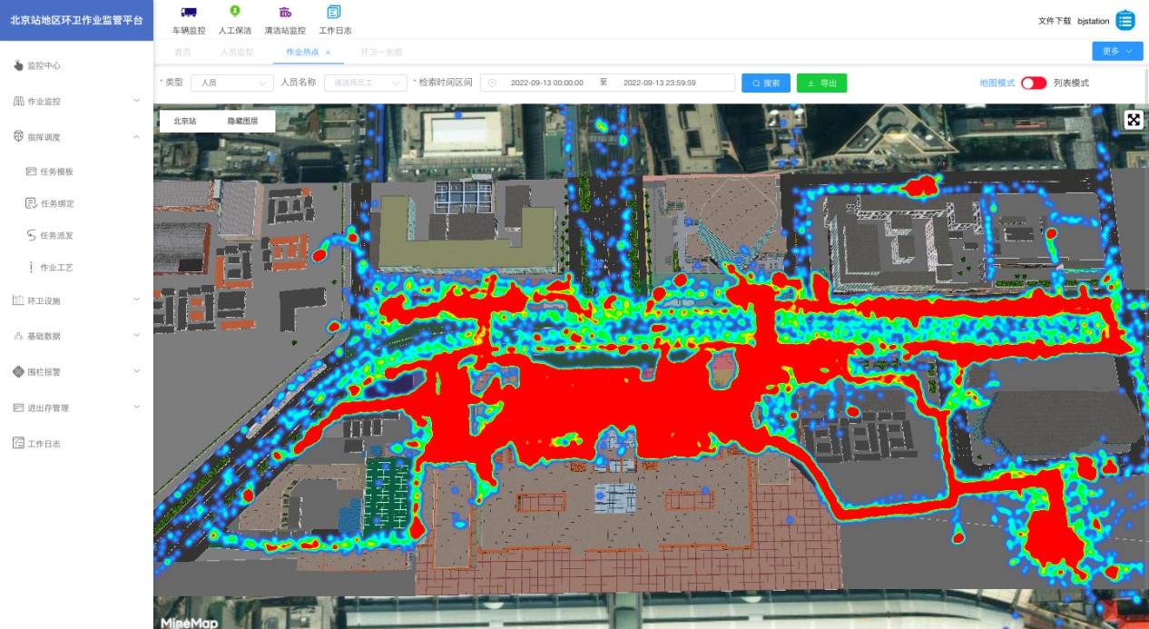 相較傳統(tǒng)的“GIS+GPS”平臺(tái)模式,北京火車站環(huán)衛(wèi)項(xiàng)目整合了GIS+RTK(高精度定位服務(wù))+BIM(建筑信息模型)+大數(shù)據(jù)(自動(dòng)化考勤管理平臺(tái))能力,組建的3D可視化智慧環(huán)衛(wèi)平臺(tái)能滿足更高的精細(xì)化管理需求。