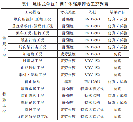 3 懸掛式單軌車(chē)體結(jié)構(gòu)評(píng)估工況推薦