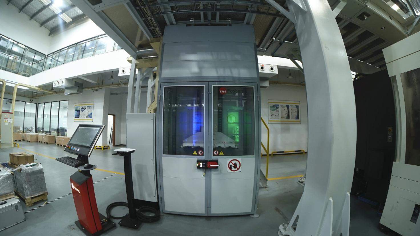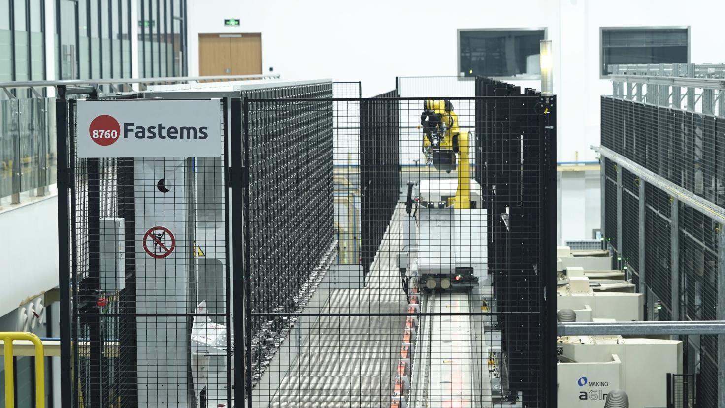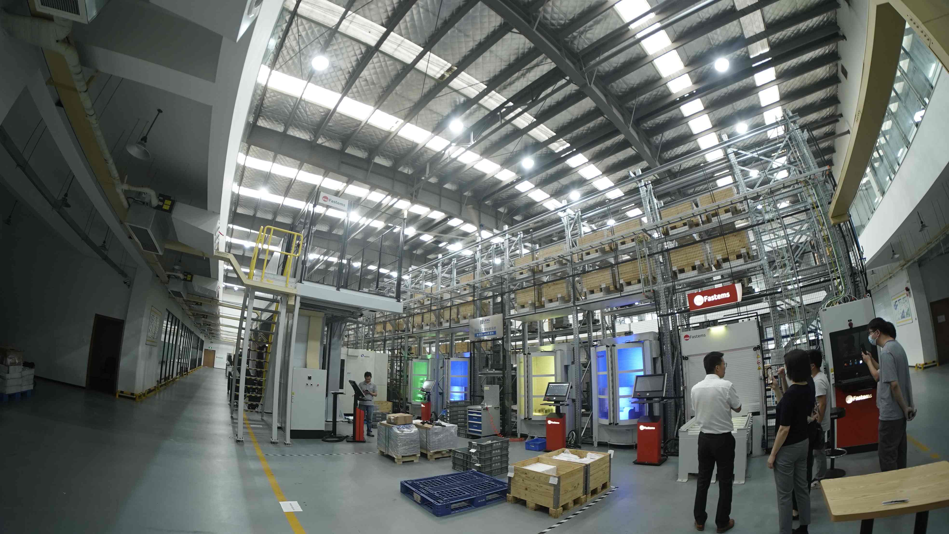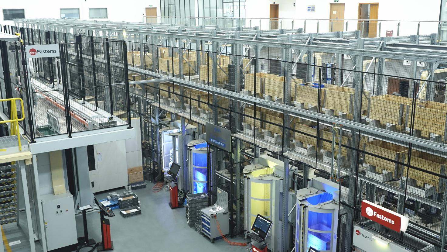 圖1:2022年7月底,F(xiàn)astems如期交付了新鴻基二期產(chǎn)線。一、二期產(chǎn)線共集成6臺機床(4臺五軸加工中心,2臺臥式加工中心),一個超大容量的立體庫,包括152個加工庫位托盤,120個物料托盤,以及一個擁有1024把刀的中央刀具庫。