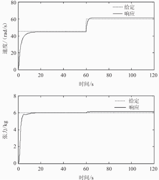 由以上仿真波形可以看出,兩電機神經網絡逆控制方法能夠很好地實現(xiàn)線性化解耦,無論是速度突變還是張力突變,都可以很好地保持系統(tǒng)相對穩(wěn)定,但兩電機神經網絡開環(huán)控制會存在一些穩(wěn)態(tài)誤差,當引入模糊PID閉環(huán)控制時,穩(wěn)態(tài)誤差消除,兩電機神經網絡逆模糊PID控制體現(xiàn)出了很好的動態(tài)響應特性及魯棒性。