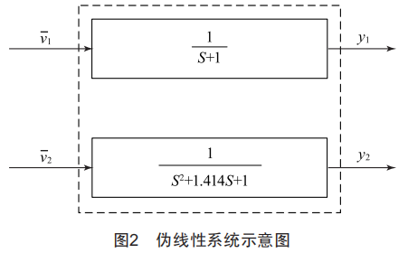 所得兩電機逆系統(tǒng)模型與原系統(tǒng)結合,從而得到一個偽線性系統(tǒng),由此線性化解耦為一個簡單的一階系統(tǒng)和一個最佳二階系統(tǒng),如圖2所示。