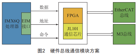 在工業(yè)總線通信模塊的硬件設(shè)計上,由于需要同時支持EtherCAT和MetroLink-m兩種總線,因此選用并口進(jìn)行連接,采用分別片選的方式切換總線類型,如圖2所示。
