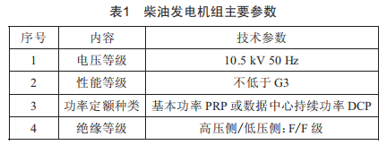 由于柴油發(fā)電機組的操作性較高,所以在地下洞式數(shù)據(jù)中心的設(shè)計中將柴油發(fā)電機組作為應(yīng)急電源,同時根據(jù)規(guī)范要求,柴油發(fā)電機系統(tǒng)應(yīng)該按照N+1的架構(gòu)進行冗余配置。地下洞式數(shù)據(jù)中心柴油發(fā)電機組主要技術(shù)參數(shù)的選擇可按照表1進行。