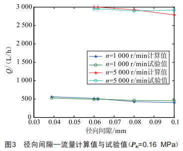 依據(jù)兩平行平板間隙流動(dòng)理論,計(jì)算齒輪泵的徑向泄漏量Q2為[4-5]: