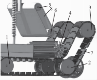 1、2、3一大驅(qū)動(dòng)輪:4一類齒輪:5、6一小驅(qū)動(dòng)輪:7一履帶:8一皮帶。