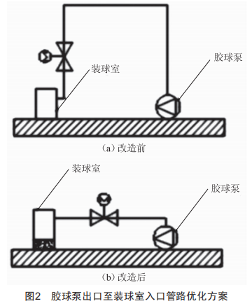 針對(duì)膠球系統(tǒng)管路布置分析如下: