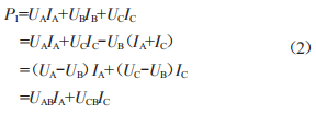 異步電機是典型的三相對稱負載,采用二表法測量電機三相功率,通過測量兩相電流以及對應的線電壓,可以計算電機的輸入功率,計算公式如下: