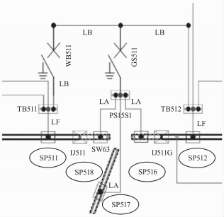 道岔處供電分區(qū)(圖2中虛線PS15S1區(qū))無直接上級電源,依靠兩側(cè)相鄰的供電區(qū)通過閉合的軌旁開關(guān)為其供電,另外道岔處供電分區(qū)每支供電臂僅有一個上網(wǎng)點(LA代表一個上網(wǎng)點),故道岔處供電分區(qū)上網(wǎng)電纜不做核減改造。