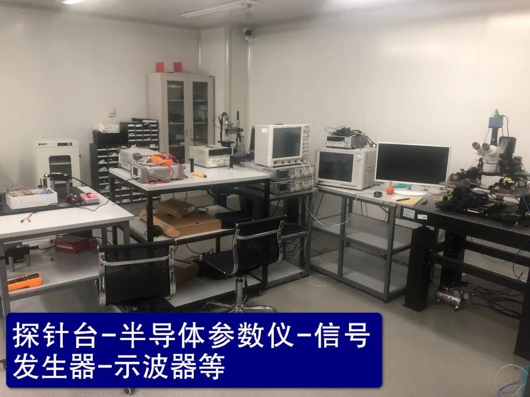 在材料表征方面,中心擁有場發(fā)射掃描電子顯微鏡、超景深三維顯微系統(tǒng)、JobinYvon激光共聚焦拉曼光譜儀、原子力顯微鏡、臺(tái)階儀、時(shí)間分辨共聚焦熒光顯微系統(tǒng)等。在器件測試方面,中心擁有高標(biāo)準(zhǔn)器件電學(xué)測試系統(tǒng),其中包括:安捷倫B1500A半導(dǎo)體參數(shù)測試儀、大功率安捷倫E4438C信號(hào)發(fā)生器、DS09254A示波器及高/低溫電學(xué)測試探針臺(tái)、高速射頻探針、網(wǎng)絡(luò)頻譜分析儀、示波器、數(shù)字源表和高速APD光電探測器模塊等在內(nèi)的一系列半導(dǎo)體和通信性能測試所需設(shè)備。