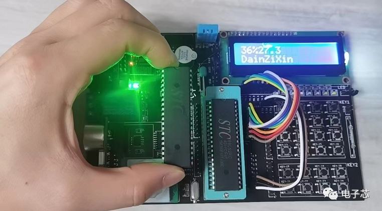 接下來更好了一塊新的單片機,燒寫如相同的代碼進行測試,液晶顯示出了溫濕度數(shù)據(jù),原來單片機也會出現(xiàn)部分燒壞,而且這個燒壞并沒有相當(dāng)明顯的溫度升高變化。