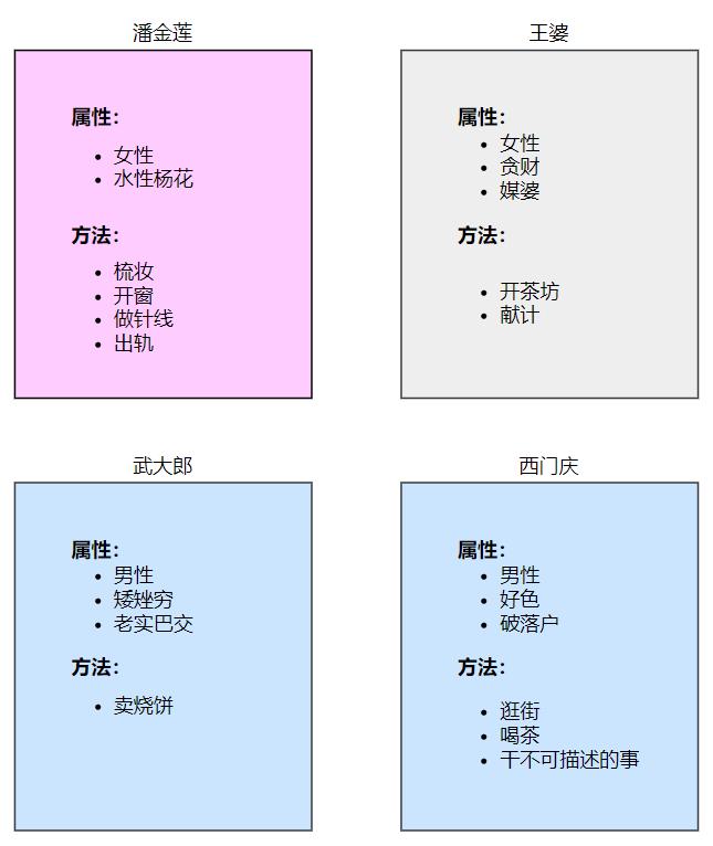挖掘出的一堆需求,不一定全部都有用,需要提取分析,做好整理。例如清河縣的大戶一家,其實沒必要關(guān)注的了,只需做個參考,知道潘金蓮的來歷即可。后面潘金蓮勾引小叔子武松,這條需求有沒有用。有用,可以給潘增加一個屬性,即不安分、水性楊花等,容易出軌。