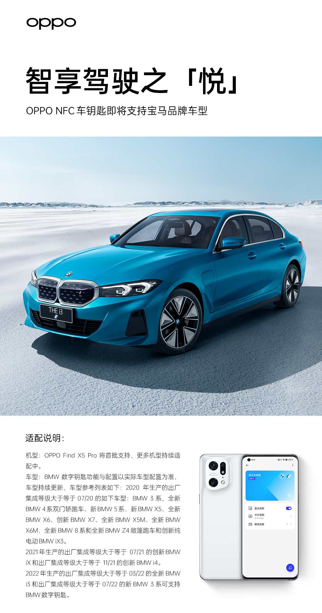 2022年9月27日,OPPO宣布NFC車鑰匙即將支持寶馬品牌車型*。OPPO Find X5 Pro將通過OTA首批升級(jí)支持,更多機(jī)型持續(xù)適配中。