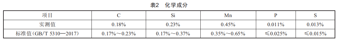 由表2可知,該爆管處化學(xué)成分符合GB/T5310—2017中對(duì)20G的要求。