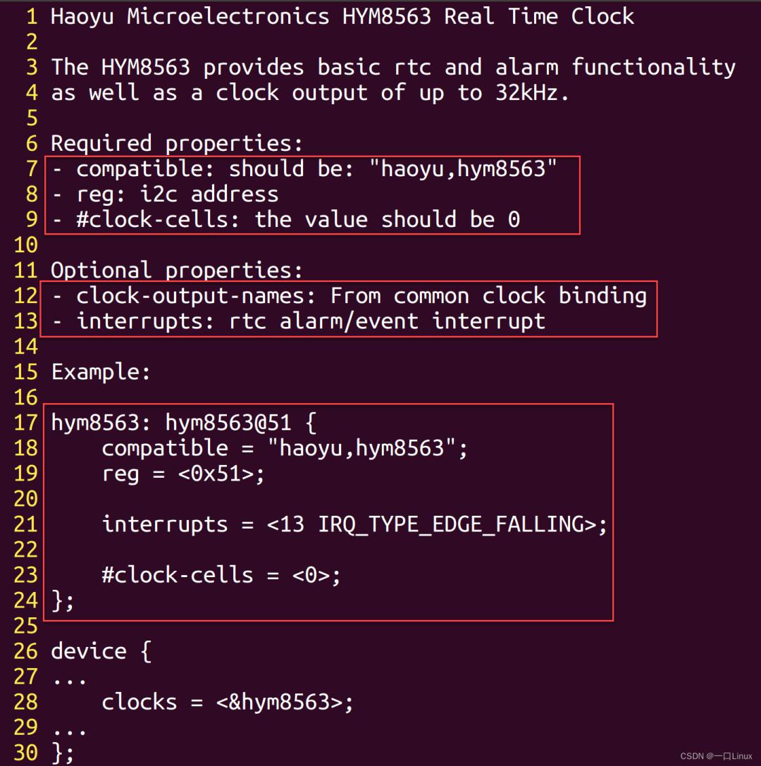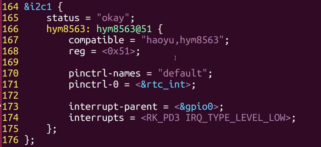 內(nèi)核中已有關(guān)于hym8563的設(shè)備樹節(jié)點信息說明:
