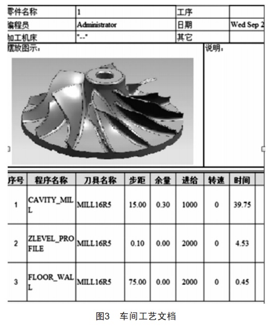 為適應(yīng)數(shù)字化設(shè)計與制造任務(wù)形勢的要求,滿足企業(yè)的個性化管理需求,本文使用Nx/oPEN開發(fā)CAM車間工藝文檔,可自動讀取零件中的加工工序信息、刀具信息,并列表展示:根據(jù)后處理器自動生成數(shù)控加工程序單中的程序代碼,同時提供用戶選擇當(dāng)前Part中工件裝夾簡圖的功能:此外,提供了在初始說明書中用戶輸入信息的功能,以及對Part文件中存在的數(shù)控加工工序操作指導(dǎo)說明書進(jìn)行信息修改的功能。最終在Nx中按頁生成數(shù)控加工工序操作說明書的PDF文檔,生成的車間工藝文檔如圖3所示。