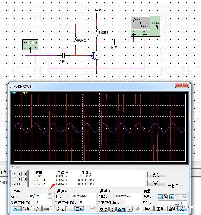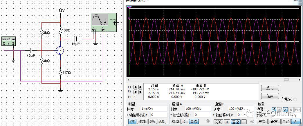理論上,該電路會對該信號進(jìn)行約為3倍放大,即信號幅值可達(dá)到300mA左右??墒怯山Y(jié)果可知,該電路并沒有進(jìn)行理論性放大,同時(shí)還出現(xiàn)了底部失真現(xiàn)象,這使結(jié)論變成了謬論。