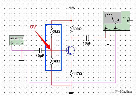 由于這個原因,我在設(shè)計(jì)偏置網(wǎng)絡(luò)的時(shí)候,理所當(dāng)然地將偏置電壓設(shè)置在Vcc/2(即6V)上,如圖所示: