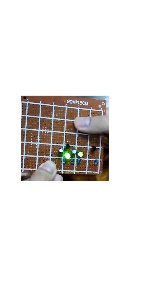電路的組成很簡單:四個電阻(1K*2;10K*2)、兩個LED-Red、兩個10uF電容,以及兩個三極管8050。