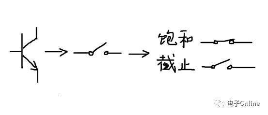 理解了三極管的“放大”,對于三極管的“飽和”、“截止”就很簡單了,因?yàn)椤帮柡汀?、“截止”兩種本質(zhì)上就是三極管“放大”的特殊狀態(tài),此時(shí)三極管就相當(dāng)于一個(gè)“開關(guān)”。視頻中把“飽和”、“截止”簡單理解為開關(guān)的“開通”、“關(guān)閉”兩個(gè)狀態(tài)。