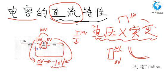 在直流部分,視頻圍繞“電容電壓在直流條件下,電壓不能夠突變”的定理,對電容的直流特性進(jìn)行了詳細(xì)的分析。