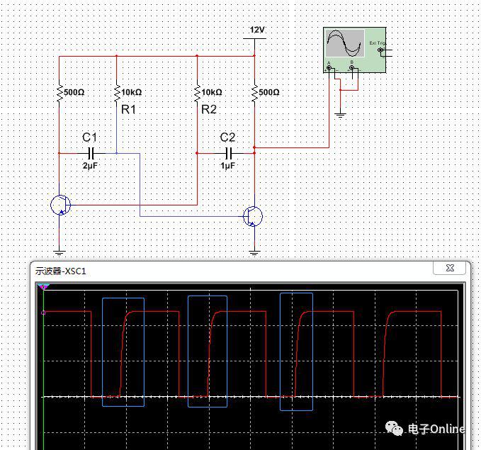 頻率和占空比的問題主要還是跟“電容的充放電”有關。在前面的電路分析中我們已經(jīng)講到,三極管的電平之所以會發(fā)生跳變,主要是電容通過與三極管的合作而完成的;而其中的合作工作,就涉及到電容的充放電過程。這也說明,只要我們能夠控制其中電容的充放電,即可控制信號的輸出頻率。同時通過調節(jié)電路兩部分的電參數(shù),即實現(xiàn)占空比的可控輸出。
