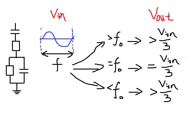 在上一推文中已經(jīng)介紹了,當(dāng)頻率=f0的信號(hào)經(jīng)過(guò)RC串并聯(lián)電路之后,其輸出=Vin/3。同時(shí),當(dāng)信號(hào)頻率≠f0時(shí),其輸出會(huì)小于Vin/3。