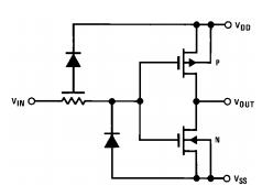 這個問題可以在原理圖1中進行分析。分析后你會發(fā)現(xiàn),假如反相器真的輸出了一個2V-Vcc的信號,其中的推挽電路(Q1、Q2和Q3、Q4)和mos管會很容易發(fā)生串通現(xiàn)象。其原因可根據(jù)反相器的內(nèi)部原理圖解釋,如下: