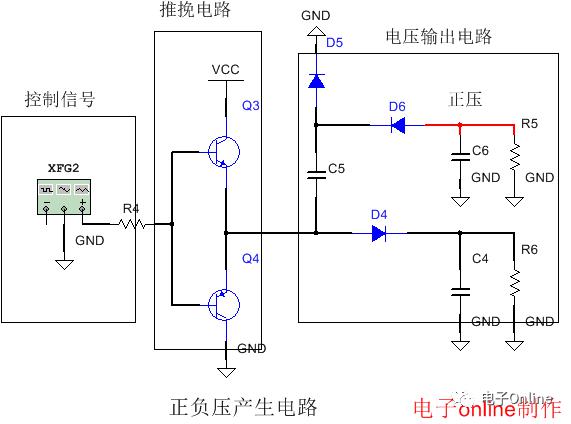 第一部分是控制信號(hào);第二部分是推挽電路;第三部分是電源輸出電路;