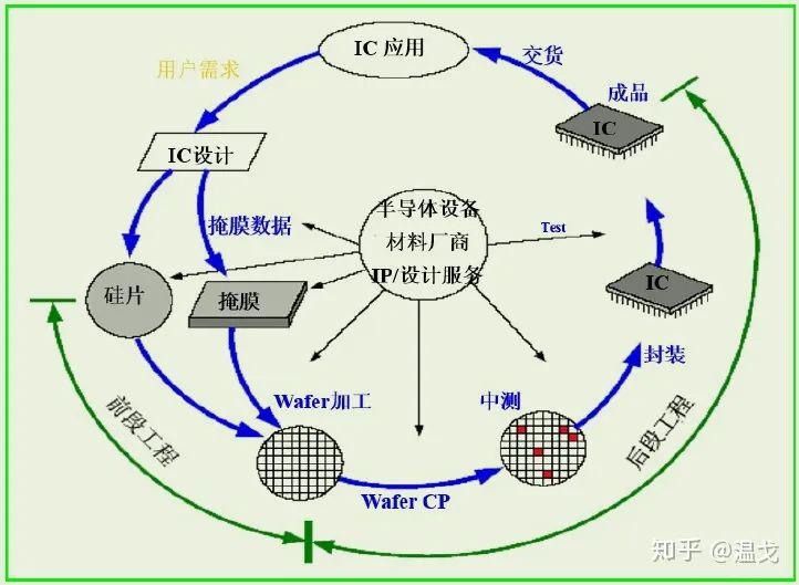 一顆芯片從無到有,從有需求到最終應(yīng)用,經(jīng)歷的是一個漫長的過程,作為人類科技巔峰之一的芯片,凝聚了人們的智慧,而芯片產(chǎn)業(yè)鏈也是極其復雜的,在此,我大致把它歸為四個部分(市場需求--芯片設(shè)計--芯片制造--測試封裝)。