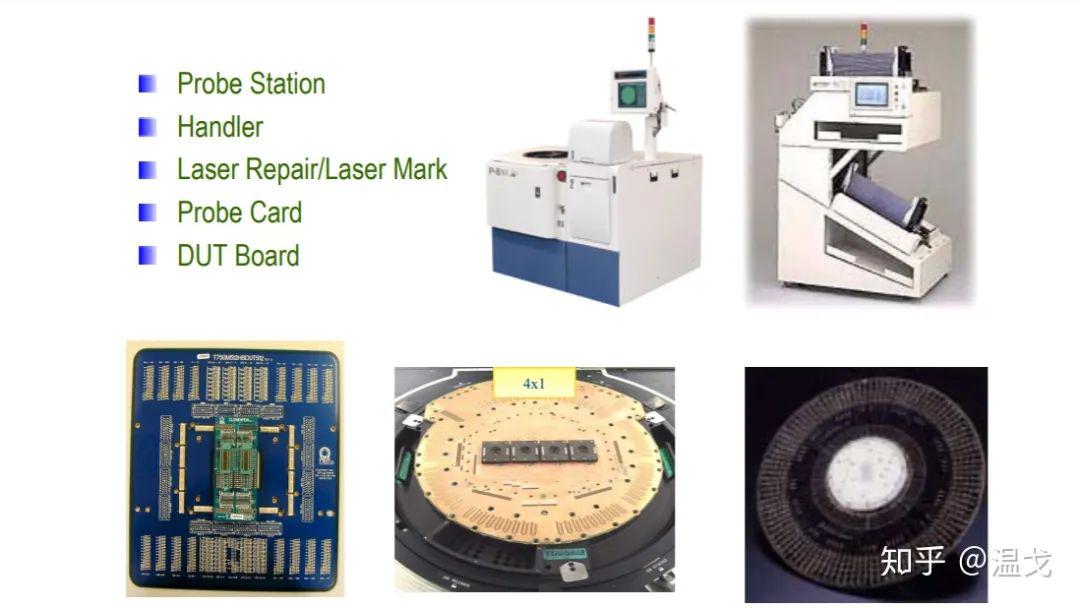 在測試之前,當(dāng)然要有ATE設(shè)備,CP測試需要Probe Card, FT測試需要Load board, Socckt等。來一張全家福吧。最下邊左一是Load Board(又叫DUT Board), 左二是Probe Card.