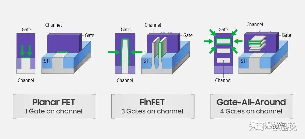 3nm已經(jīng)在研發(fā)的路上了,目前主要是臺(tái)積電和三星兩家Foundry。三星的3nm工藝會(huì)使用環(huán)繞柵極晶體管(GAA)技術(shù),而不是現(xiàn)在的FinFET,新的技術(shù)可以讓芯片面積減少35%,功耗下降約50%,與5nm FinFET工藝相比,同樣功耗情況下性能提升33%。