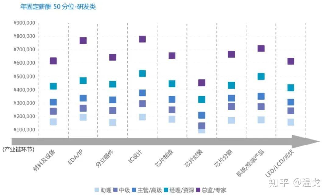 至于工藝和材料,薪資要略低。工藝方向的光刻工藝還是可以的,材料屬于生化環(huán)材四大金剛之一,很多學(xué)生稱之為天坑。提到這里還要說一下器件,這個職位也比較兩級分化,很多方向好的器件博士年薪不輸數(shù)字,當(dāng)然也有很多器件的同學(xué)在苦海里掙扎......封測在這份報告里薪資最低,當(dāng)然只是在半導(dǎo)體產(chǎn)業(yè)里邊相對來看。做芯片測試其實薪資上限挺高的,比如我有個朋友從某top2 ATE公司去了國內(nèi)一家design house,薪資70w+。
