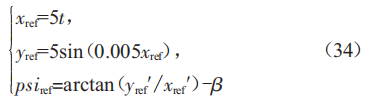 參考軌跡如下,式中8為側(cè)漂角,可利用上文中的側(cè)漂角計算模塊來計算。