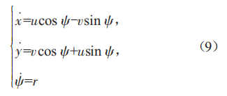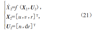 該部分對解耦后的水平面動力學模型進行控制,將水平面動力學方程解耦出來,X+=[u,,,r]T為被控量,U+2[n,dr]T為控制量,有如下形式的動力學關系: