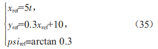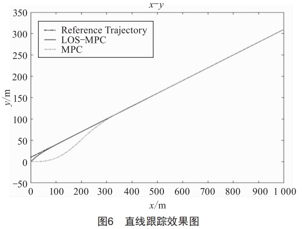 航向控制部分運用模型預測算法。對于該部分的控制器設計,需假設在此之前的軌跡跟隨控制器可以實現(xiàn)一個"完美"的跟蹤控制,令ure0=,r,rre0=r=,即將,r、r=作為參考值輸入航向控制器。